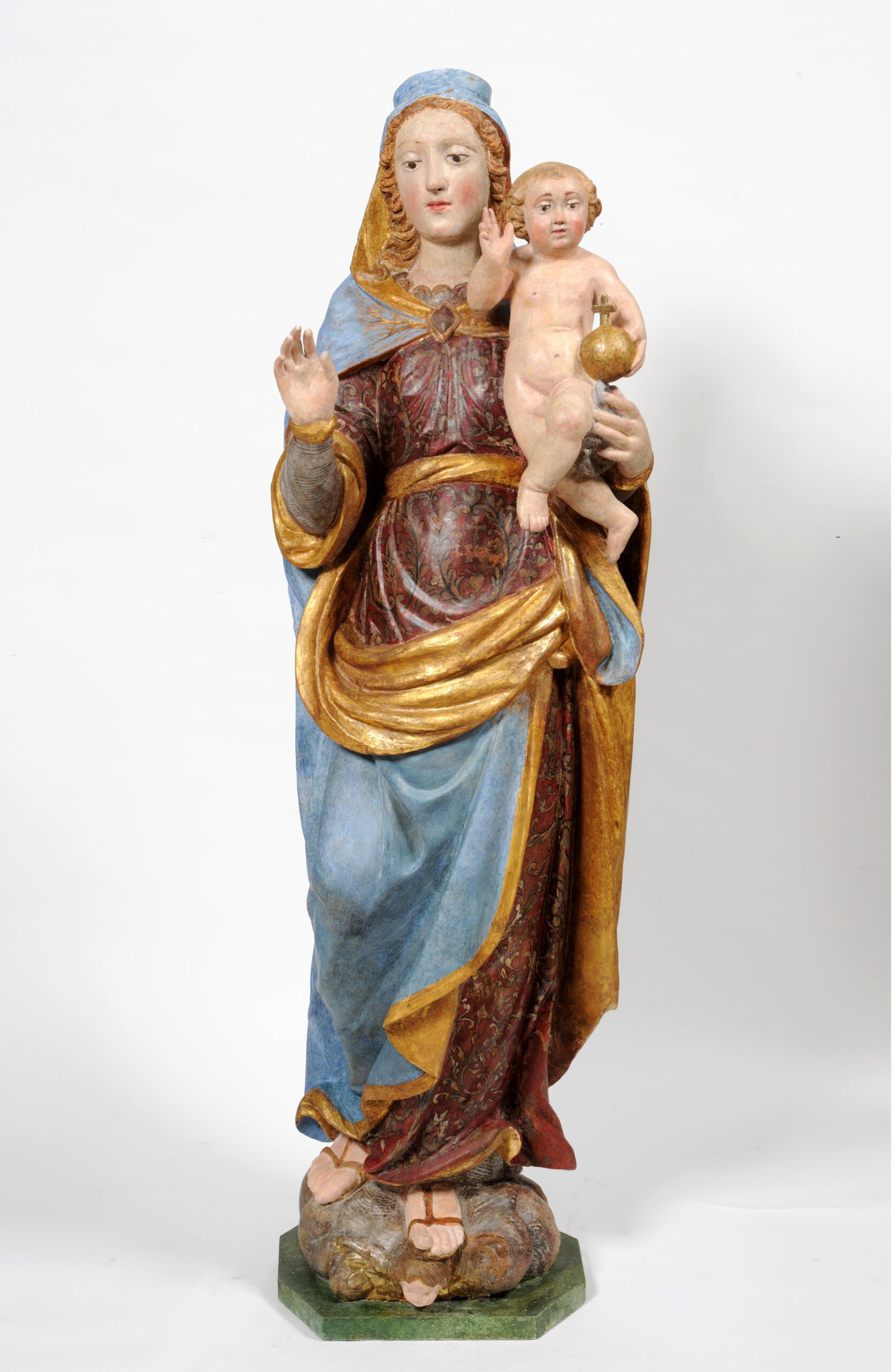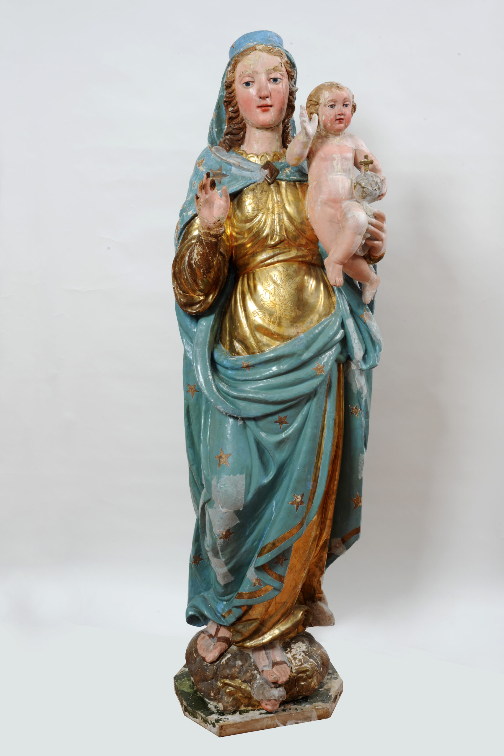 Restauro della scultura lignea policroma e dorata raffigurante la “Madonna del Rosario” con baldacchino ligneo intagliato e doratoEpoca: XVII secolo