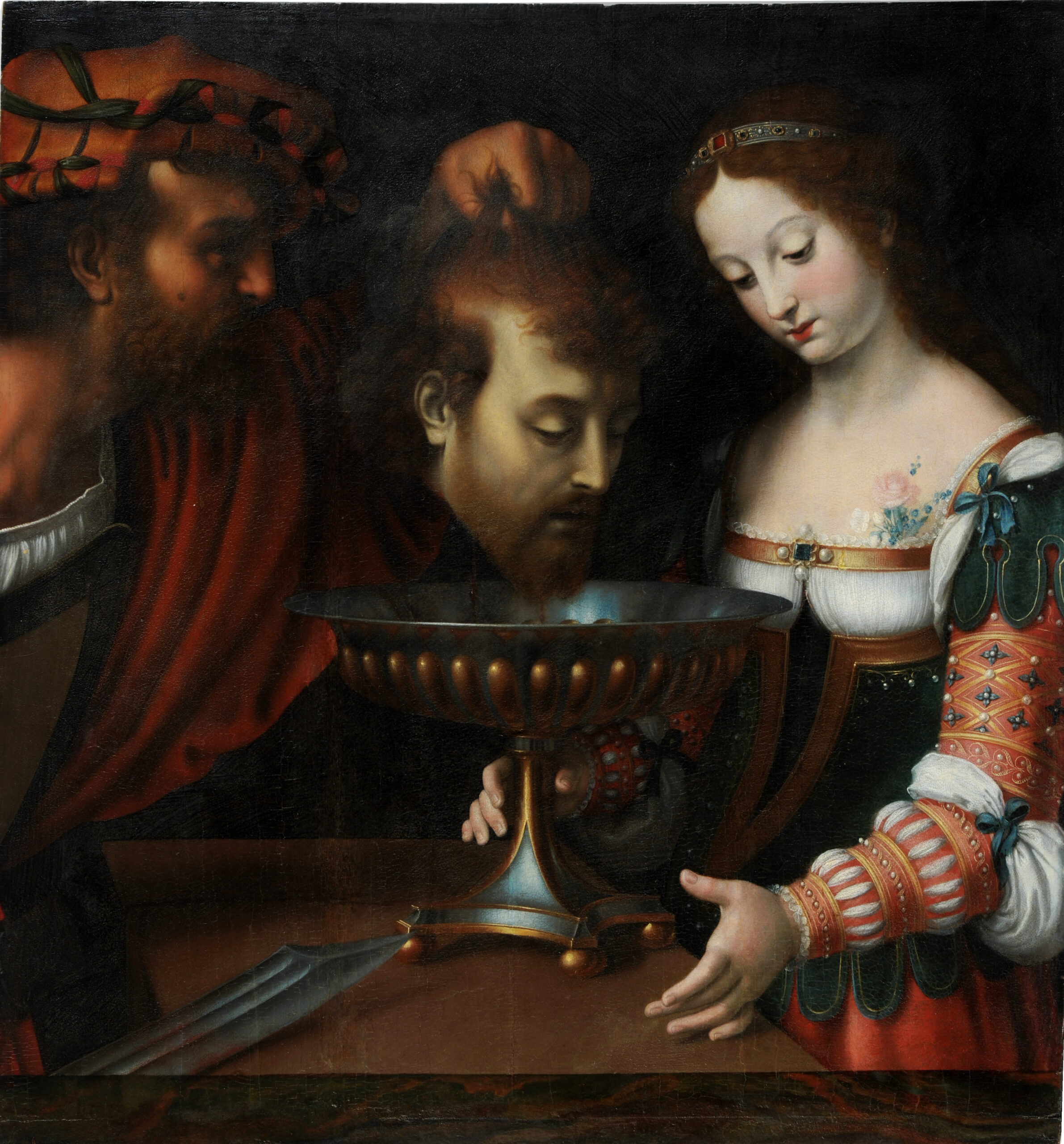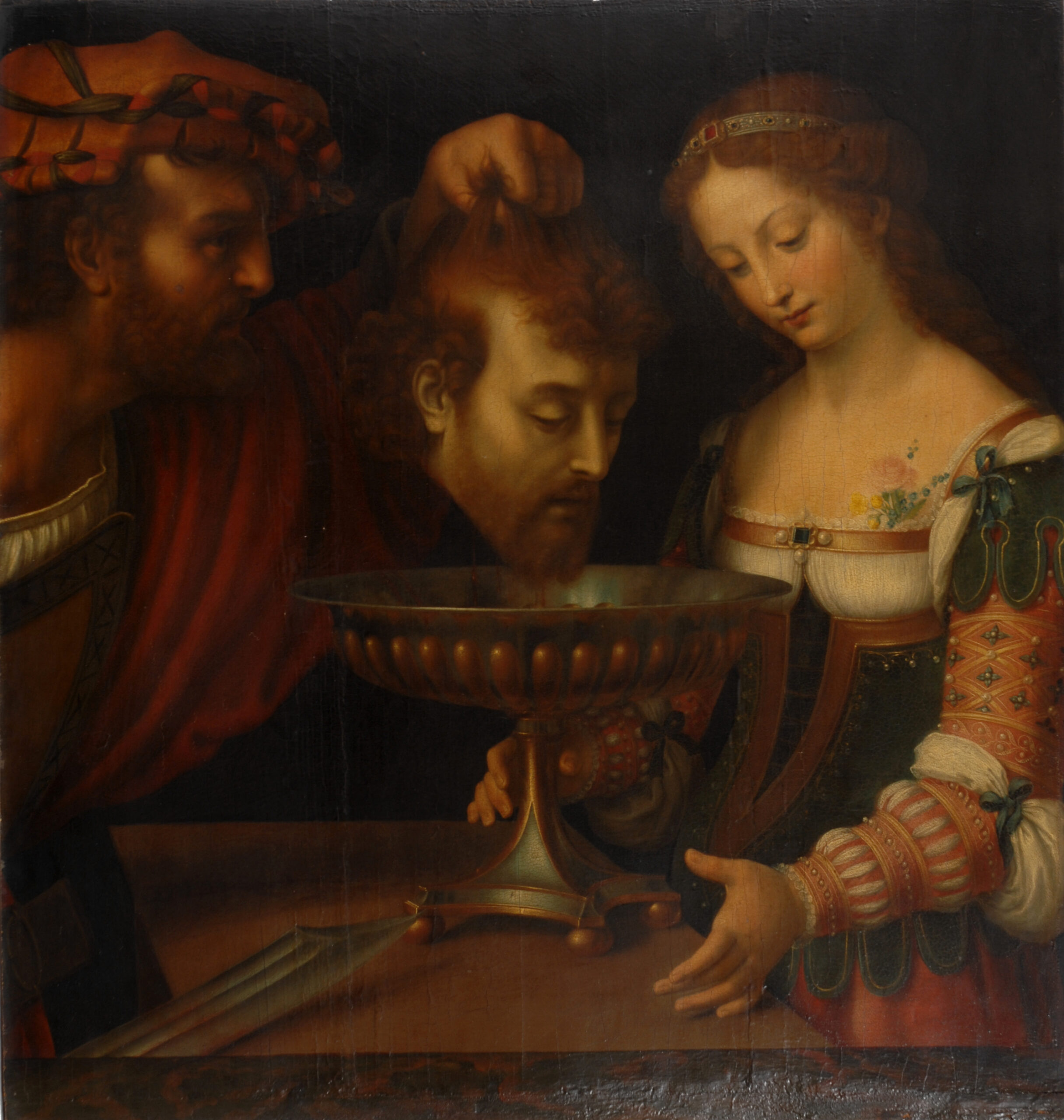 AUTORE: BERNARD VAN ORLEYRestauro dipinto su tavole raffigurante ”Carlo Magno depone nella cattedrale di Aquisgrana il piatto d’argento ed il calice della cena di cristo”Epoca XVI secolo