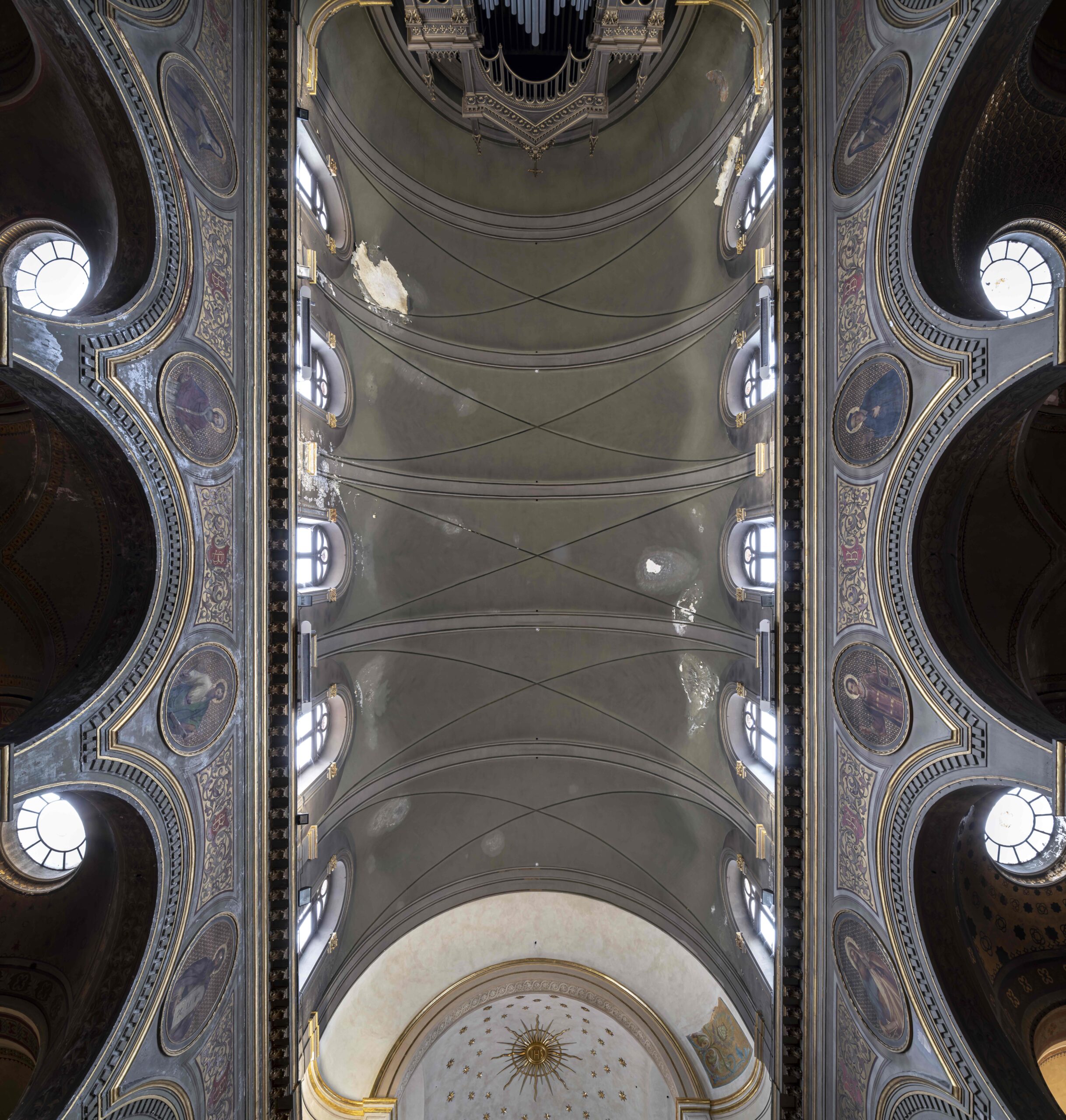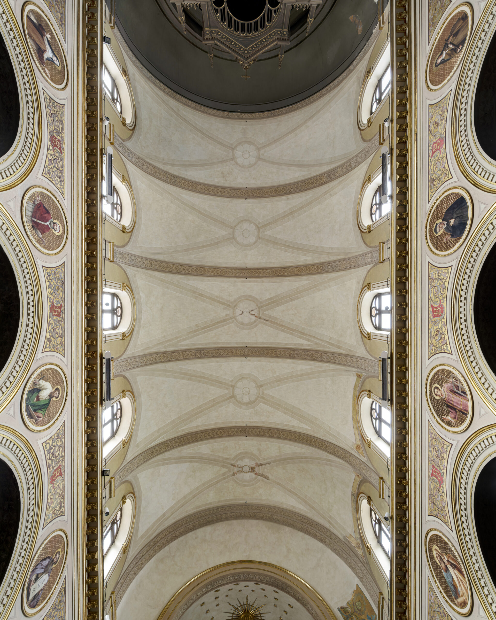 Restauro dell’apparato decorativo della Navata Centrale e delle Pareti.