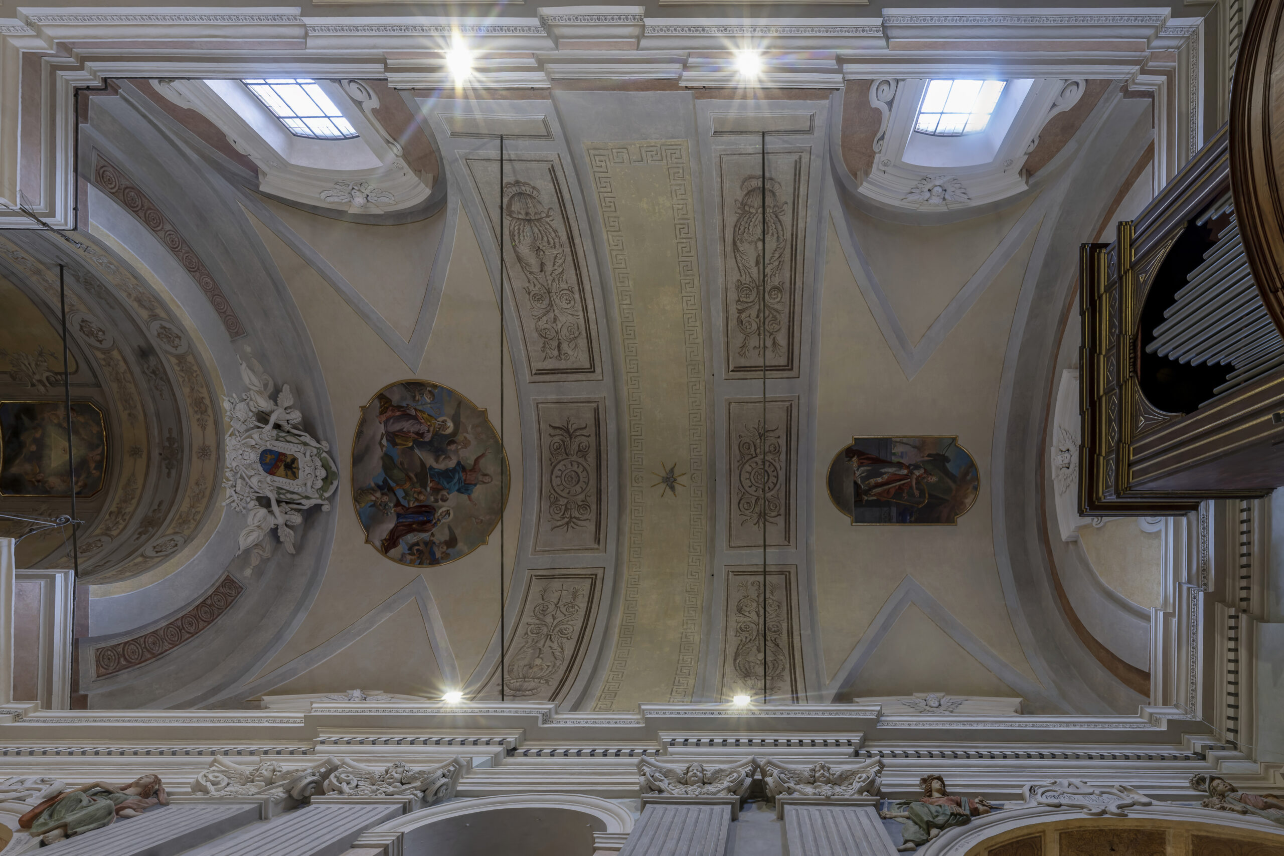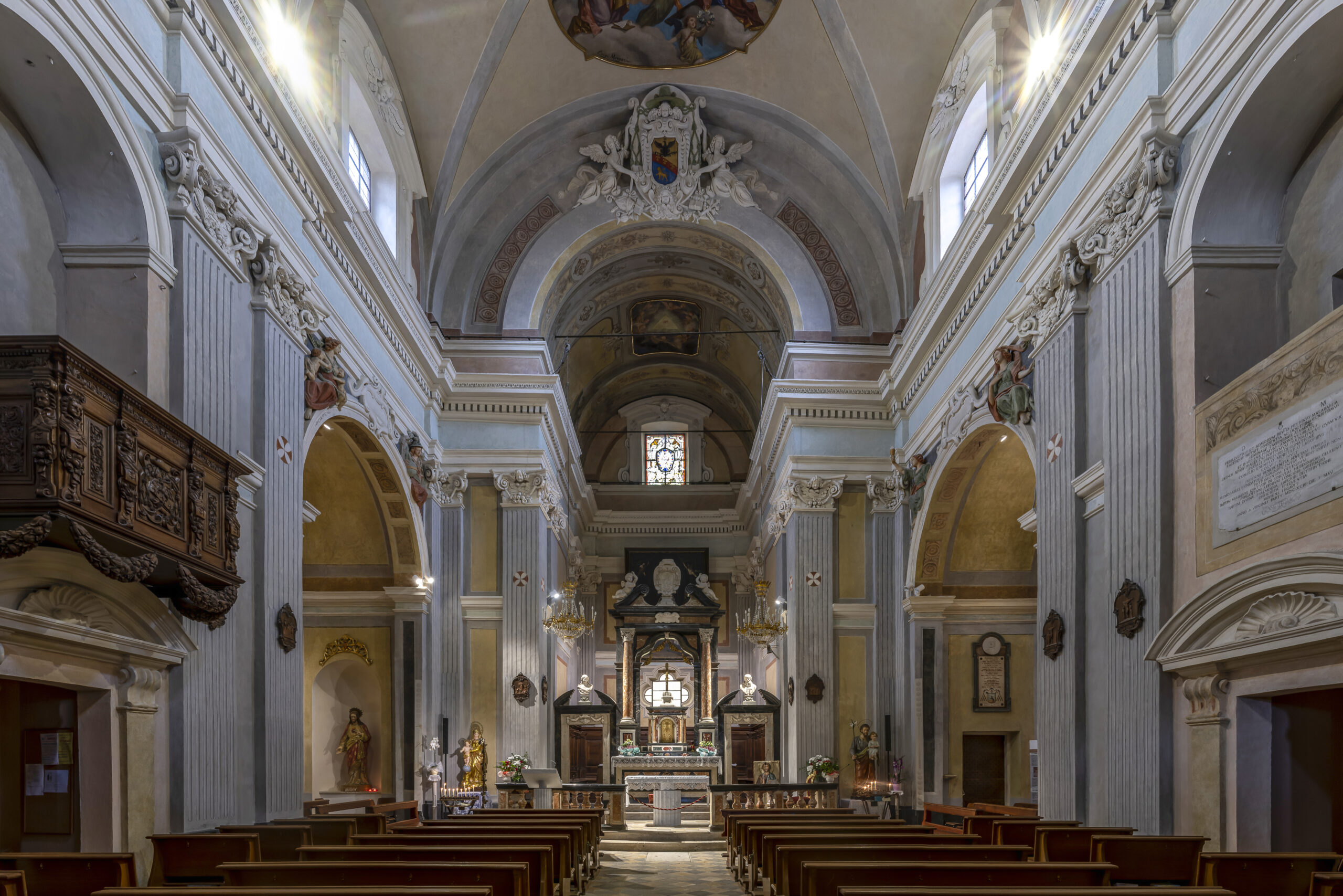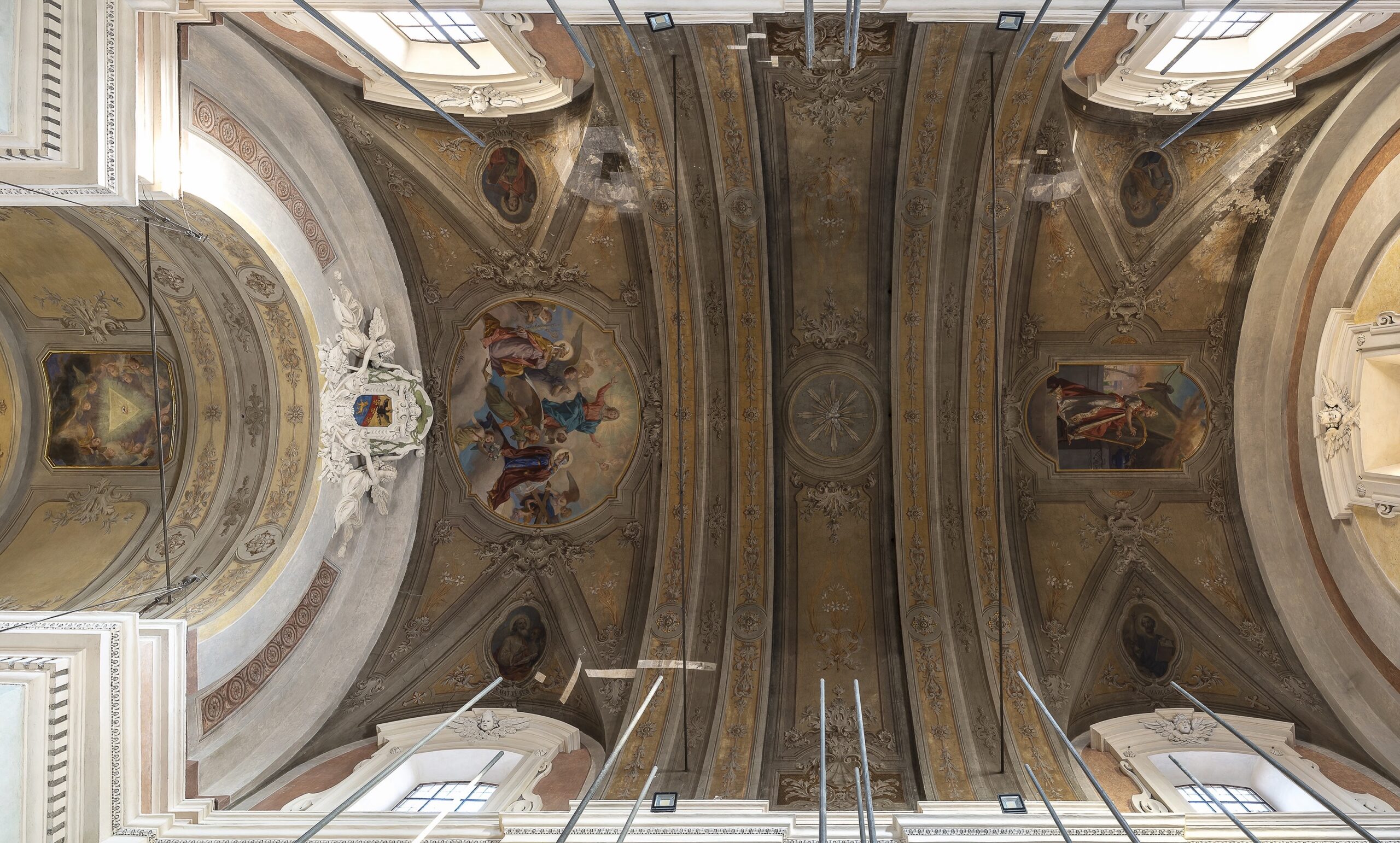 Restauro dei dipinti murali e degli stucchi delle pareti della Navata. Restauro dei dipinti murali e degli stucchi delle pareti del presbiterio, dell’arcone soprastante e della volta. Restauro delle superfici decorate dell’abside e della volta. Restauro degli affreschi e degli stucchi del XVII secolo siti nelle Cappelle laterali e nella navata centrale. Epoca XVII secolo